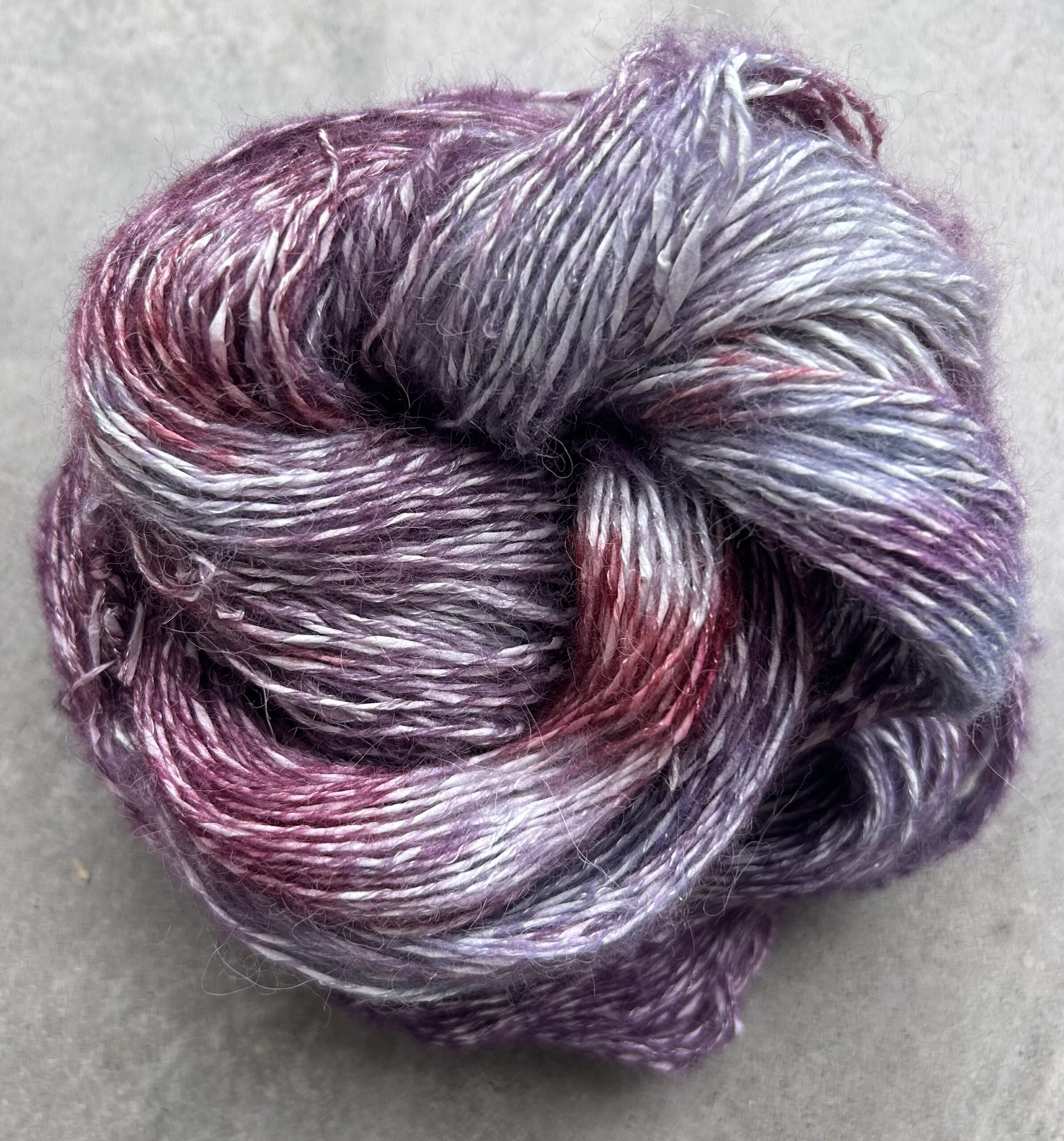 It knits really nicely and creates a very light fabric with a gentle halo. This would make beautiful summer garments and if woven would create something very special.