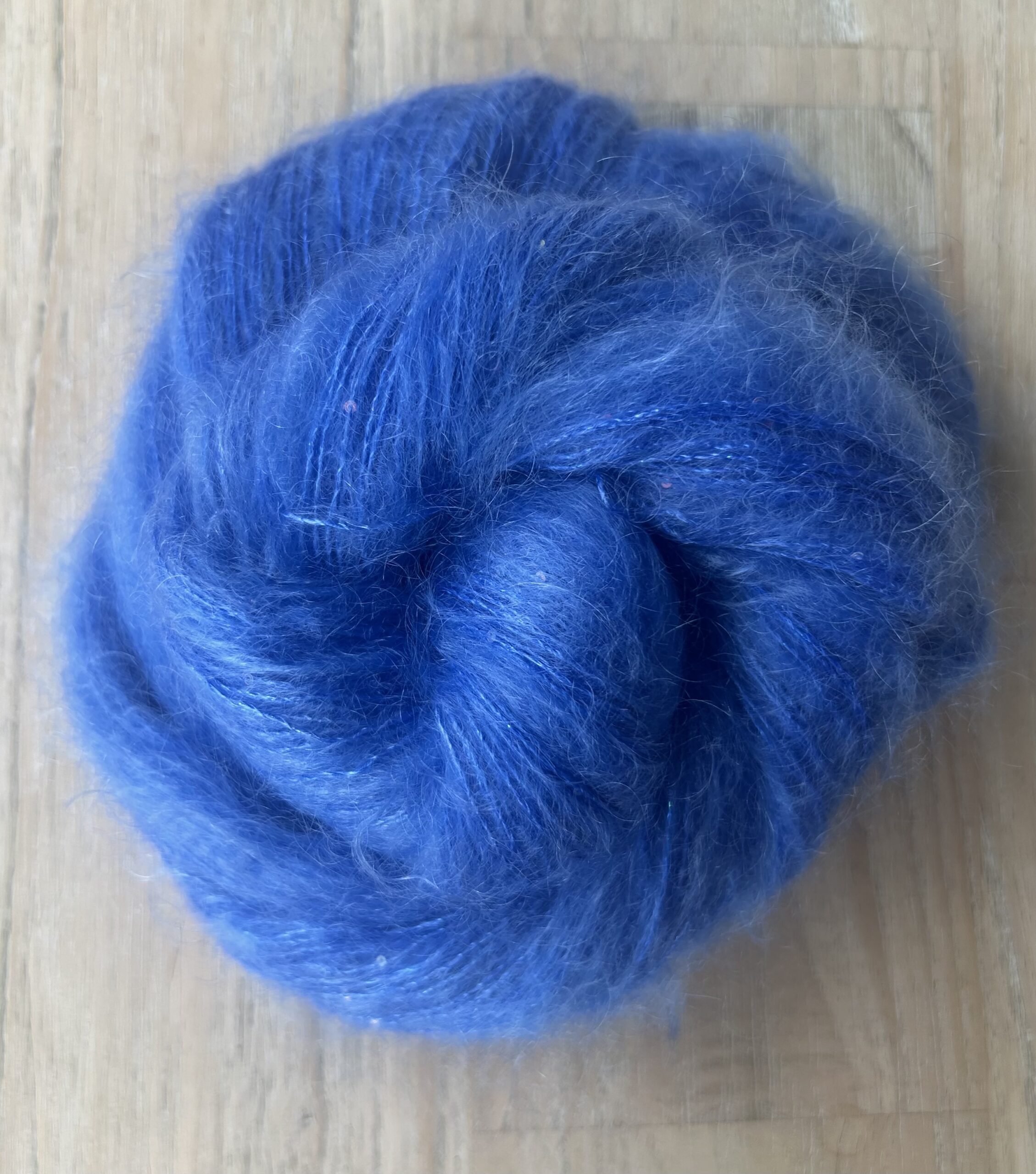 When knitted, it blocks beautifully and creates a floaty sparkly fabric which has an exquisite softness.